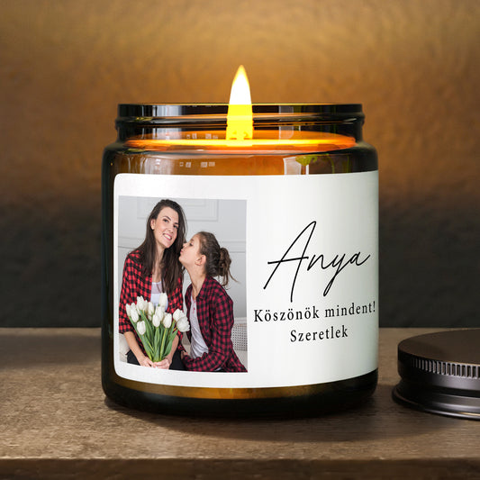 Anyák napi illatgyertya saját fotóval és szöveggel