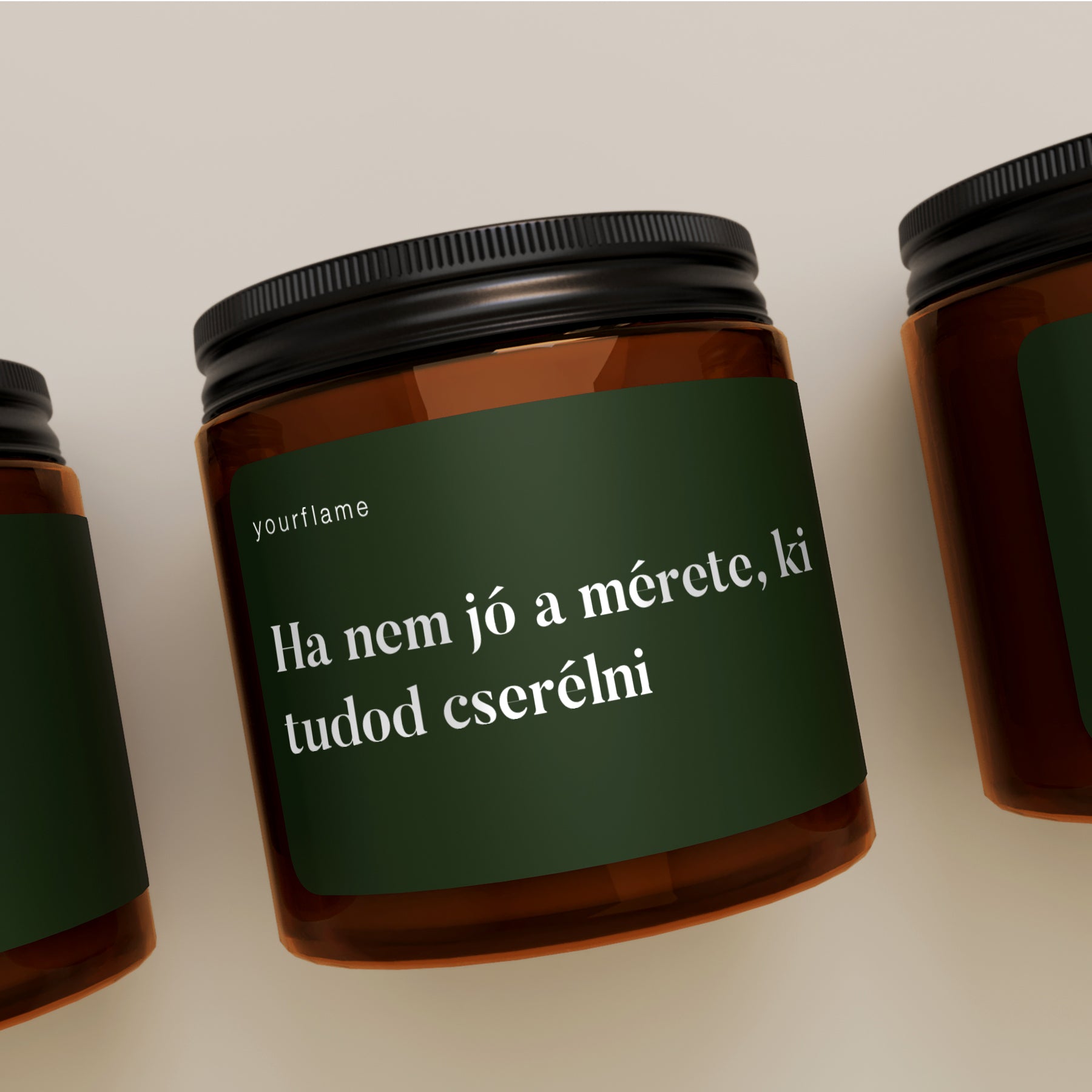 Ezt örökítettük meg egy gyönyörű, kézzel készült, remek illatú, 100% természetes vegán szójaviasz gyertyán. Ha olyan ajándékot keresel, ami egy elcsépelt mondatot ötvöz egy egyáltalán nem elcsépelt design kézműves gyertyával, akkor megtaláltad a tutit. Ha mégsem, ki tudod cserélni.