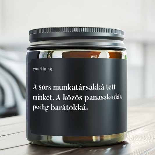 Ezt örökítettük meg egy gyönyörű, kézzel készült, remek illatú, 100% természetes vegán szójaviasz gyertyán. Ha olyan ajándékot keresel, ami egy elcsépelt mondatot ötvöz egy egyáltalán nem elcsépelt design kézműves gyertyával, akkor megtaláltad a tutit. Ha mégsem, ki tudod cserélni.